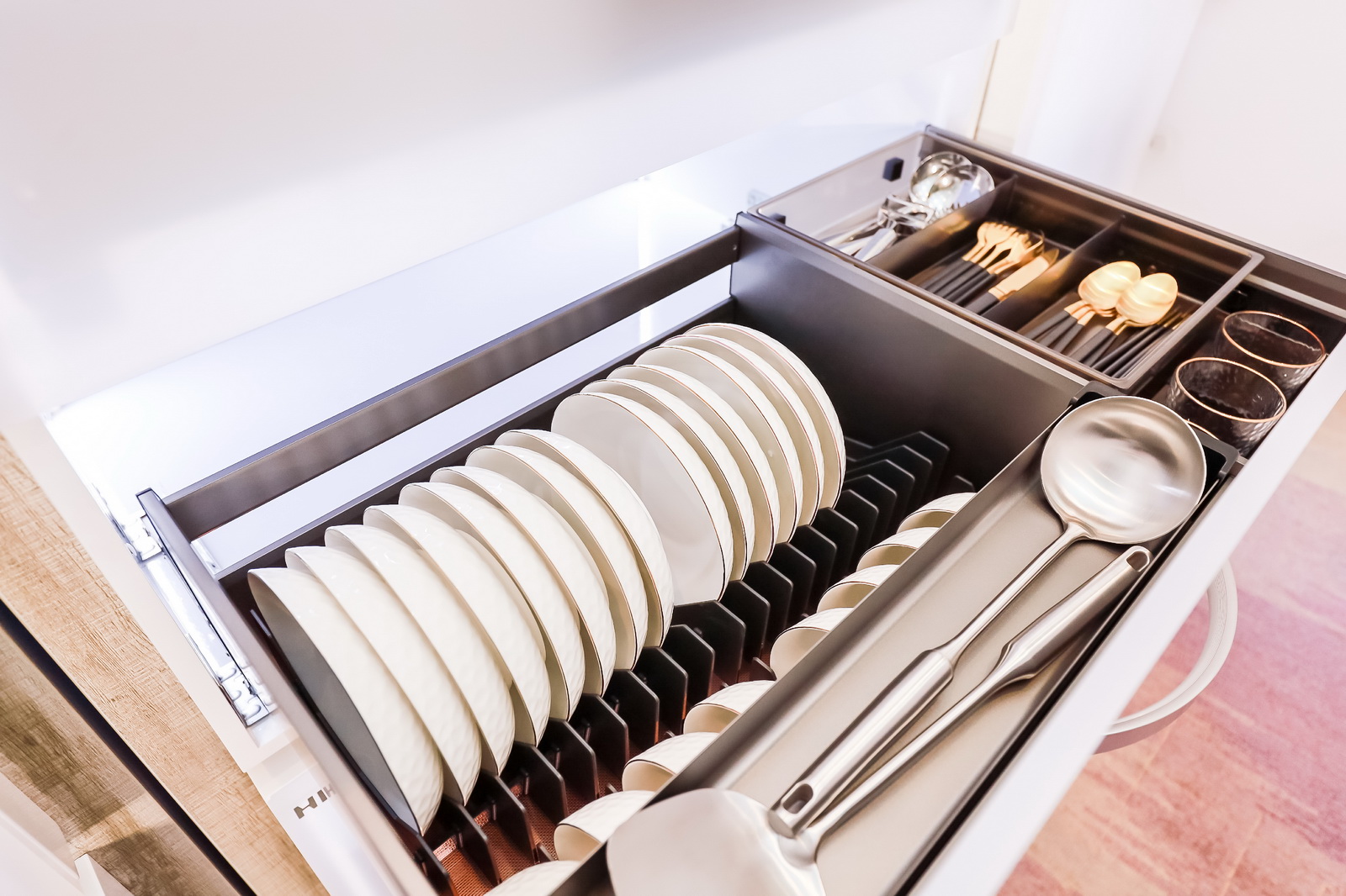 在發(fā)布會(huì)上由功能五金事業(yè)部帶來(lái)一批2022年的重磅新品:不銹鋼板式拉籃之皇的“藝術(shù)之作”基多拉、轉(zhuǎn)盤(pán)可360°旋轉(zhuǎn)的高柜旋轉(zhuǎn)拉籃陀飛輪以及斬獲紅點(diǎn)設(shè)計(jì)大獎(jiǎng)和IF設(shè)計(jì)大獎(jiǎng)雙項(xiàng)國(guó)際設(shè)計(jì)大獎(jiǎng)的希勒4.0。