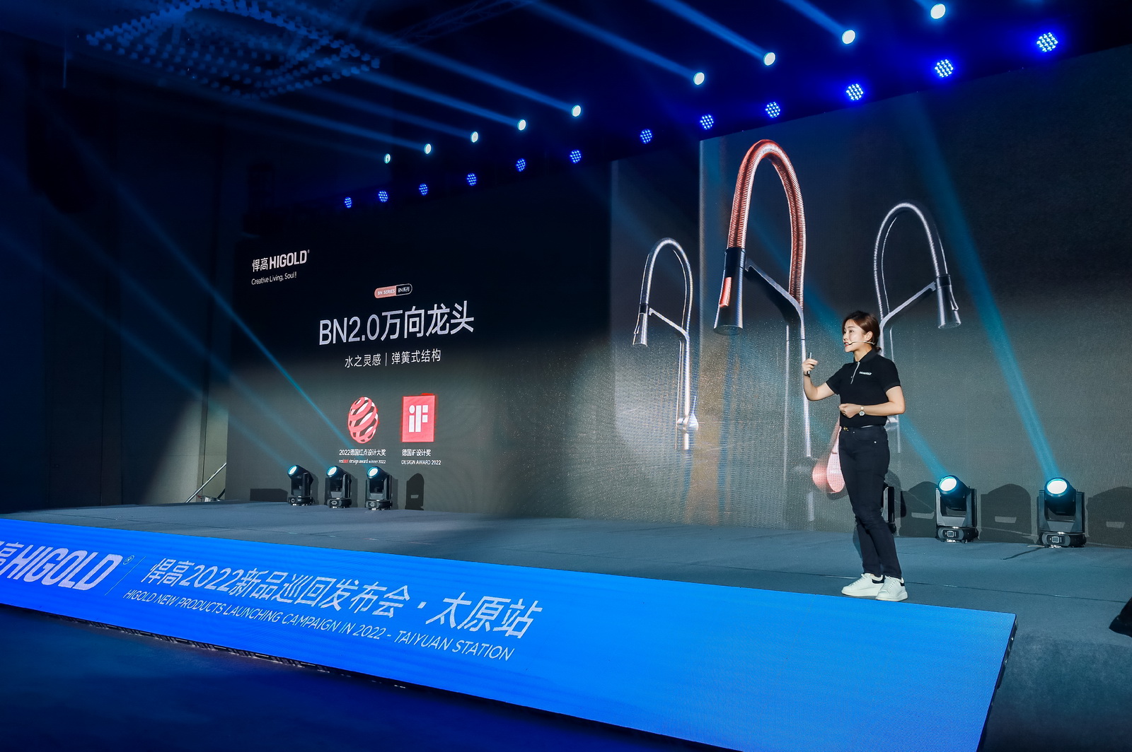 同時(shí),悍高集團(tuán)在打造一站式全屋五金解決方案的發(fā)展路上,實(shí)現(xiàn)了多領(lǐng)域的創(chuàng)新。發(fā)布會(huì)現(xiàn)場(chǎng)上悍高廚具、悍高裝飾五金、悍高廚電、衛(wèi)浴五金等負(fù)責(zé)人帶來(lái)不同系列的明星產(chǎn)品:40°C穩(wěn)流恒溫的T.LY系列花灑、革新原創(chuàng)設(shè)計(jì)結(jié)構(gòu)的嵌入式槽燈及匯聚原創(chuàng)工匠藝術(shù)與實(shí)用功能設(shè)計(jì)于一體悍高水龍頭BN2.0,引得到場(chǎng)嘉賓紛紛拍照記錄。