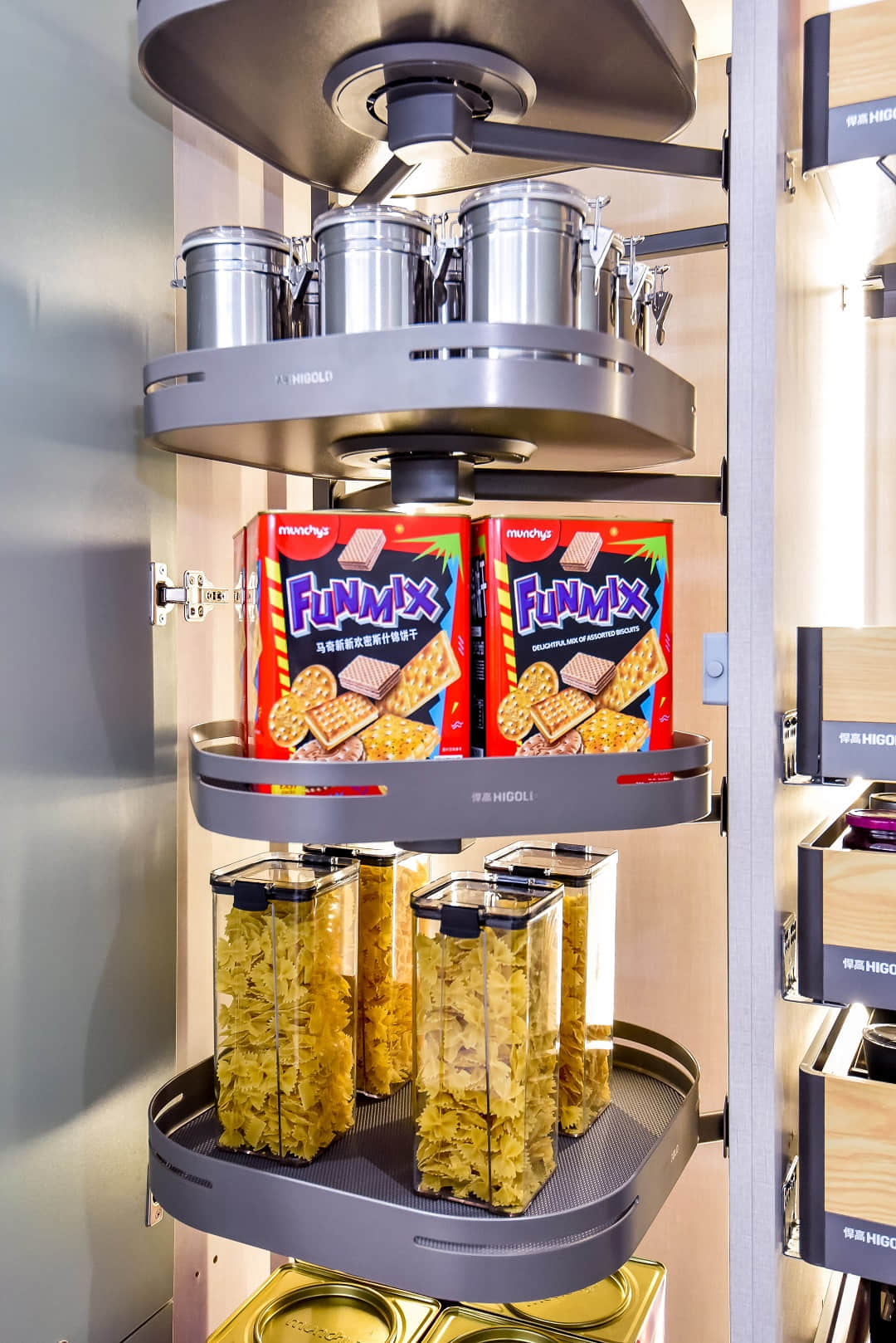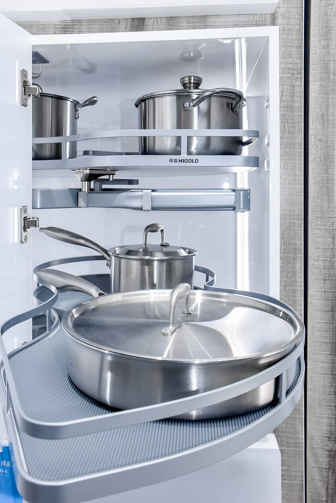 比如有云感升降、高柜取物便捷的星云升降機(jī)、行業(yè)首創(chuàng)的360°高柜旋轉(zhuǎn)拉籃陀飛輪以及榮獲紅點設(shè)計大獎和IF設(shè)計大獎的雙項國際設(shè)計大獎的希勒4.0系列拉籃;有重塑廚房收納空間、一槽整合多項廚房工作的厚面板單槽BL2.0水槽、0.6cm纖薄窄槽的柔光嵌入式槽燈等系列的明星產(chǎn)品。