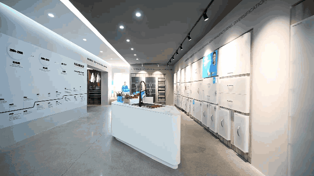 門店煥新后,悍高沈陽旗艦店上樣悍高全系列明星新品,展廳空間被劃分為多個體驗區(qū)域,包括廚房功能五金、衣柜功能五金、基礎(chǔ)五金、水槽龍頭、智能廚電、柜內(nèi)照明、內(nèi)門鎖及戶外家具。在現(xiàn)代純粹的展示空間中,通過現(xiàn)代秩序的建構(gòu)、氛圍的營造、材質(zhì)的表達等,將極簡、優(yōu)雅、時尚的氣質(zhì)隱喻其間,營造溫馨、質(zhì)樸、靜謐的空間體驗。