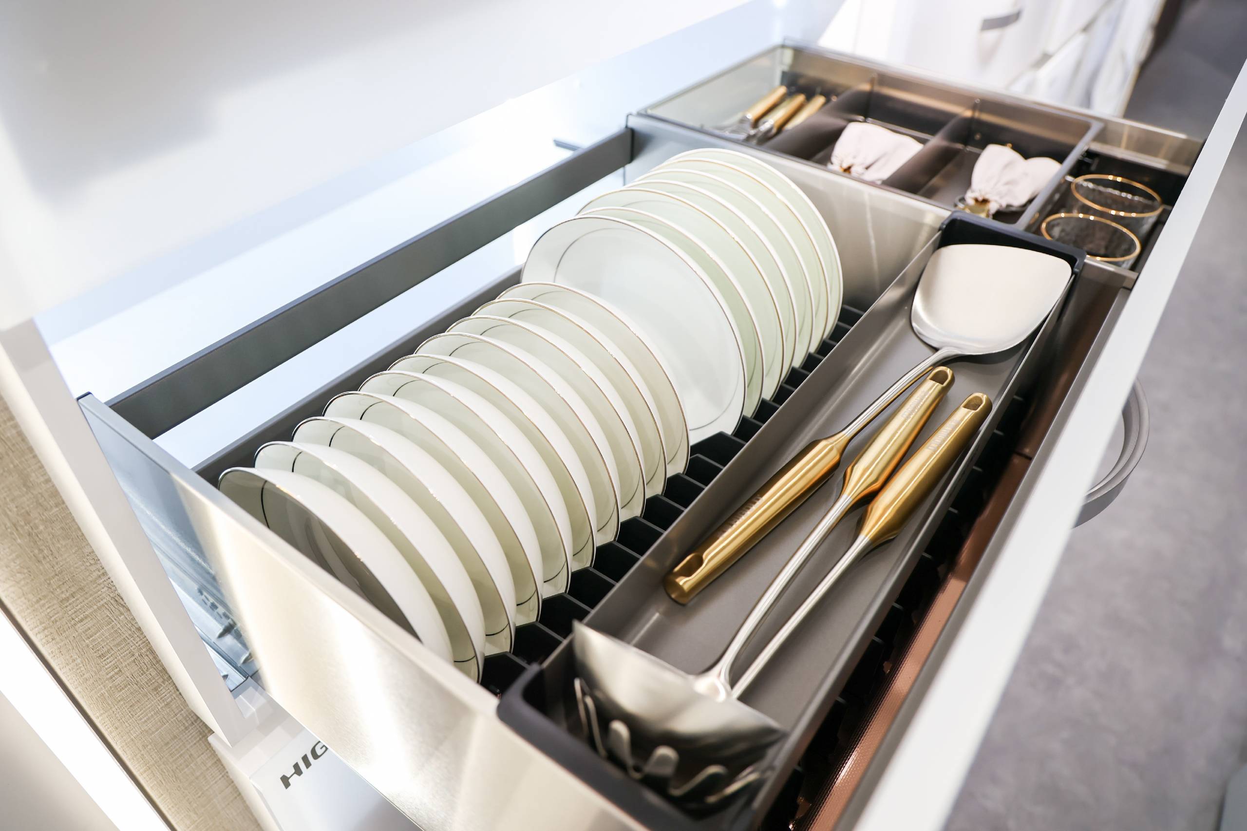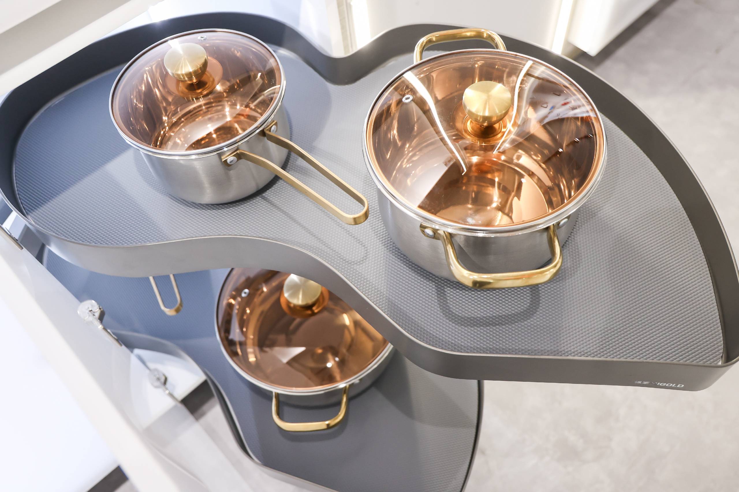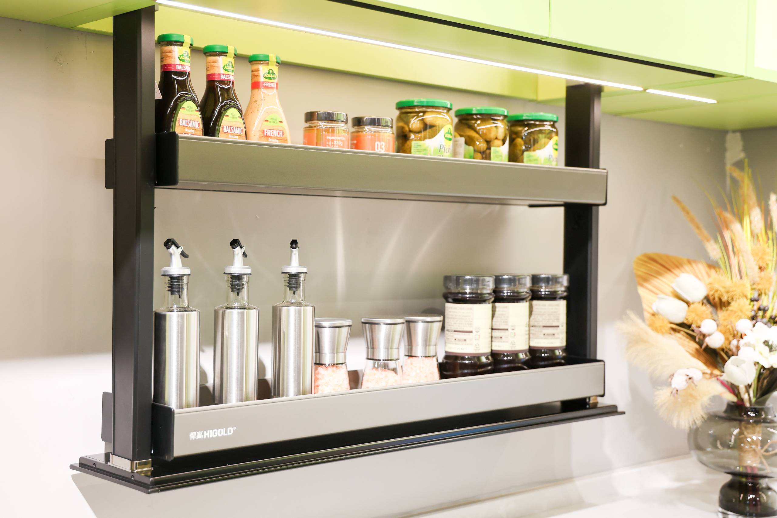 悍高收納五金與基礎(chǔ)五金新品秉持極簡風、高級風,以雕刻現(xiàn)代精神與都市靈魂的高雅簡奢驚艷與會觀眾。無縫焊接,底板二合一的全新升級希勒家族系列;行業(yè)首創(chuàng)、全新支桿設(shè)計的360°高柜旋轉(zhuǎn)籃陀飛輪;榮獲國家發(fā)明專利,獨特單桿設(shè)計的飛碟3.0;致敬力學、隨意懸停的星云升降機;冠冕國際雙料設(shè)計大獎的希勒4.0系列拉籃;抽中帶抽、靈動收納的基多拉系列拉籃;匠心細節(jié)、摩登配色的BV·莫蘭綠系列;加厚電鍍、鋼勁品質(zhì)的M2.0靜音阻尼鉸鏈。