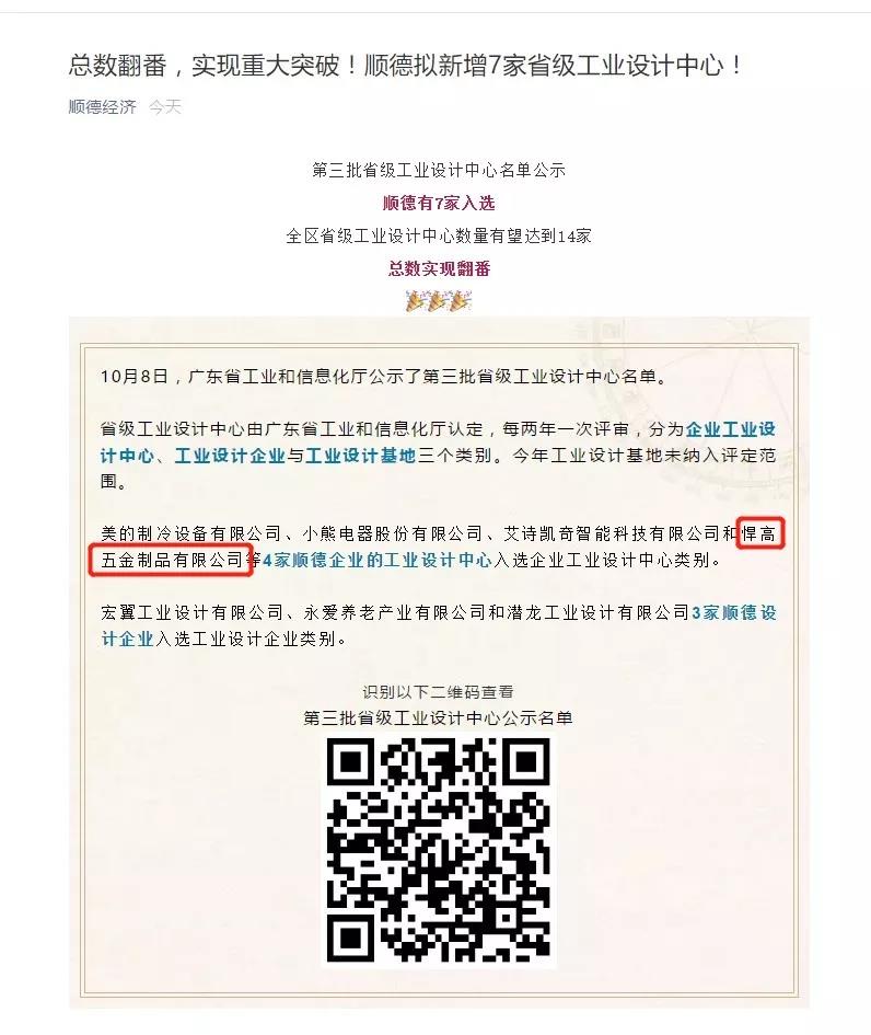 此次一起獲評的還有美的制冷、小熊電器、艾詩凱奇等綜合實力強勁的順德企業(yè)。