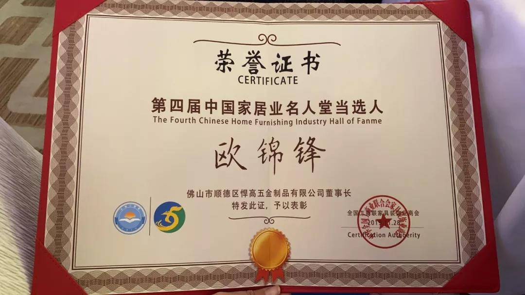 悍高集團董事長歐錦鋒以杰出的行業(yè)貢獻成為本屆“中國家居業(yè)名人堂”當選者,摘得家居業(yè)的最高榮譽!