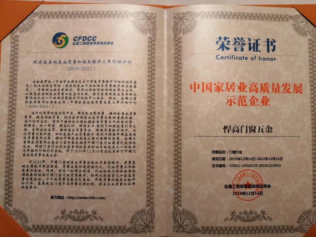 悍高集團(tuán)作為門窗五金行業(yè)中的“黑馬”,不僅獲得業(yè)內(nèi)高度好評,更于本次盛會上斬獲了多項(xiàng)榮譽(yù)。