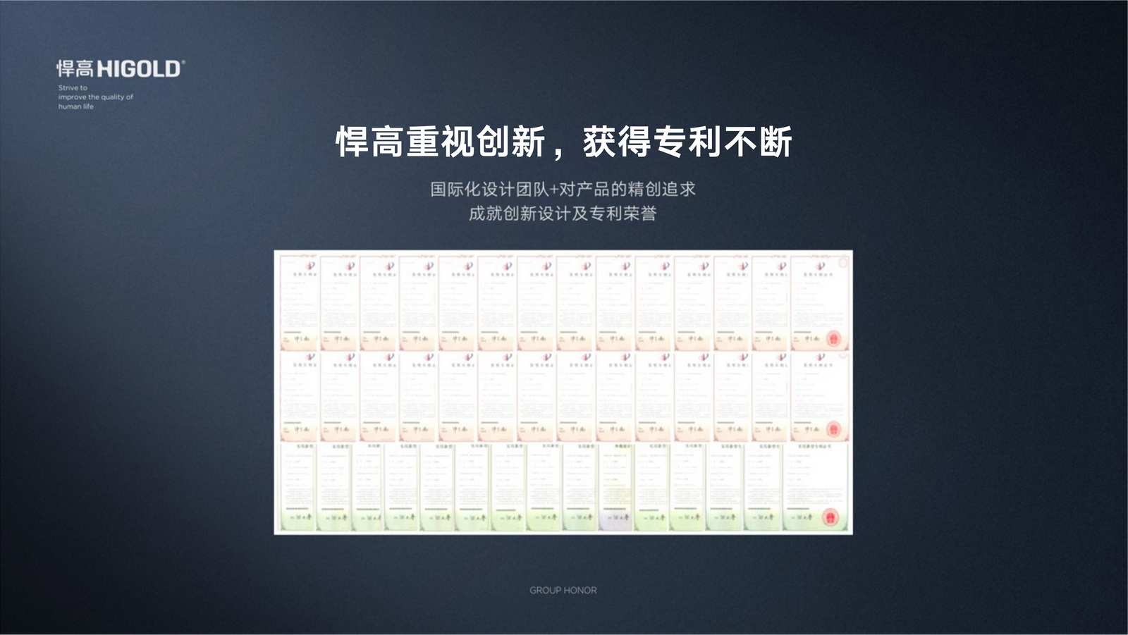 悍高集團(tuán)建立產(chǎn)研銷一體化戰(zhàn)略,擁有超過 620 項(xiàng)專利。截至 2021 年 8 月,集團(tuán)共有國內(nèi)專利 525 項(xiàng),其中發(fā)明專利 7 項(xiàng)、實(shí)用新型專利 104 項(xiàng),其余皆為外觀專利,另外有海外專利 96 項(xiàng),榮登佛山高新區(qū)2021年度知識產(chǎn)權(quán)密集型企業(yè)。